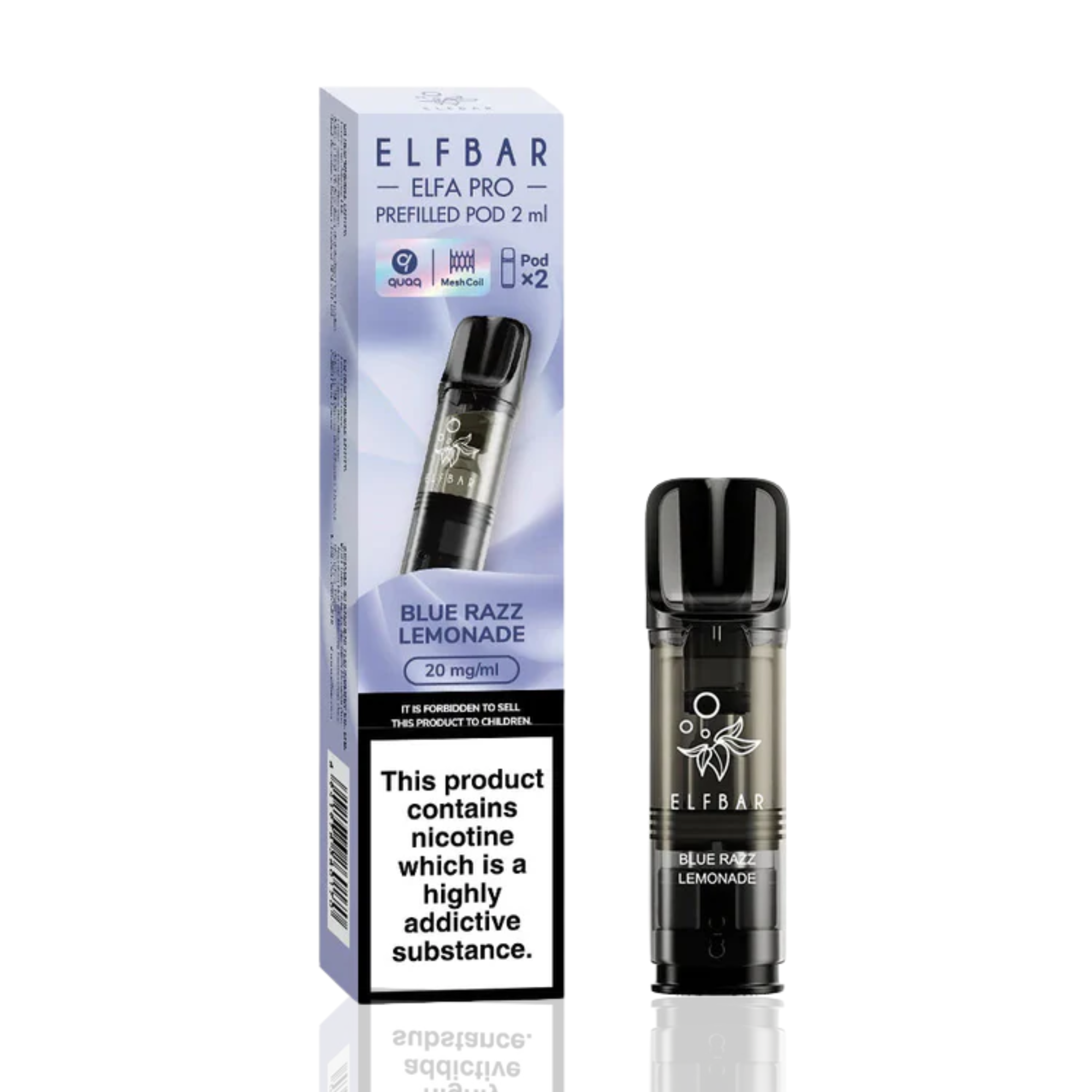 Each pack contains 2 x 2ml prefilled pods with 20mg Salt Nicotine, built-in QUAQ Mesh Coil, and provides up to 6000 puffs for long-lasting enjoyment.